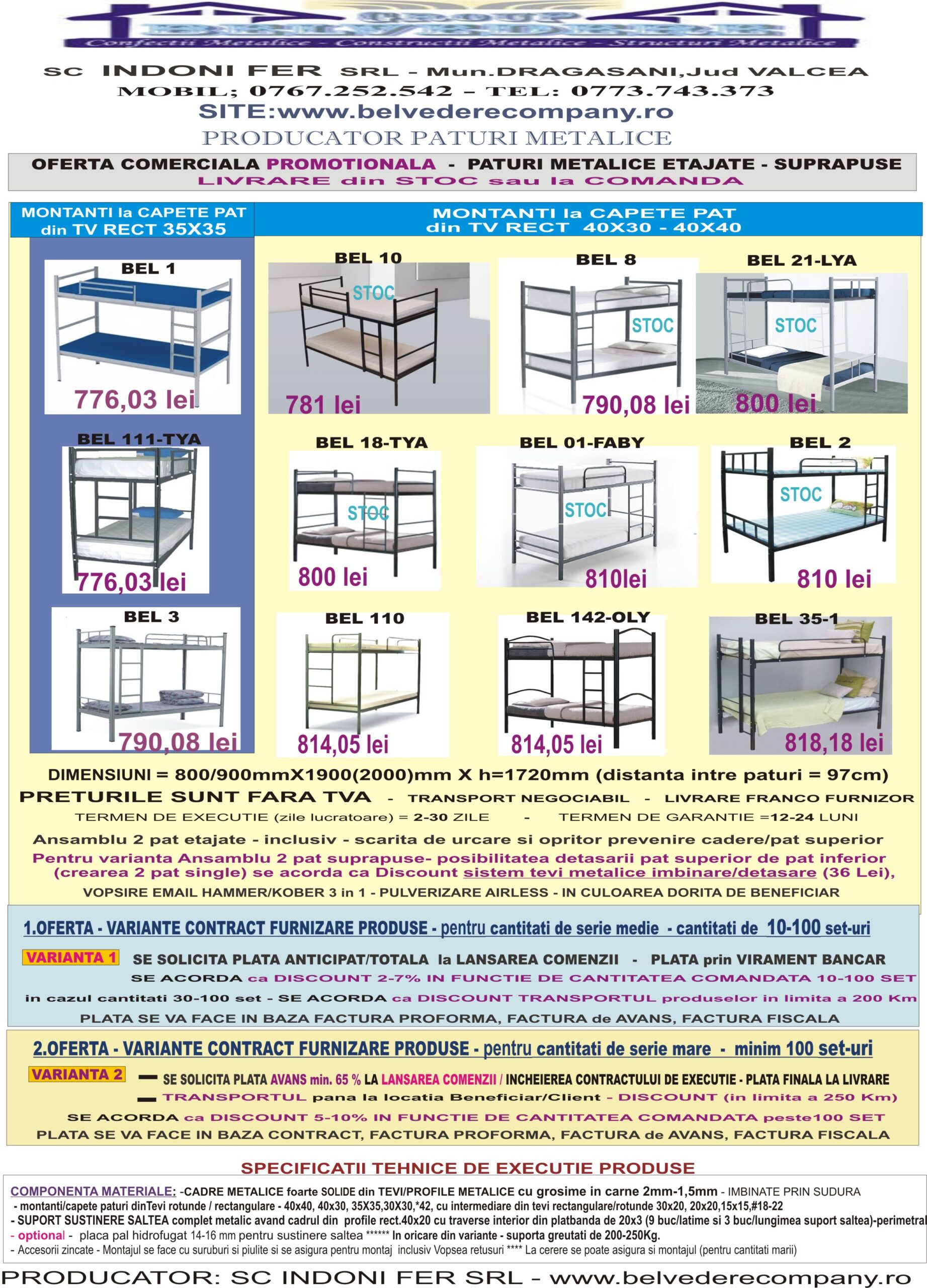 Lanseaza o cerere de oferta – Cu deosebita consideratie – Echipa BELVEDERE COMPANY – producator Paturi metalice – orice tip/model/dimensiuni/cantitate – produse fabricate in Romania